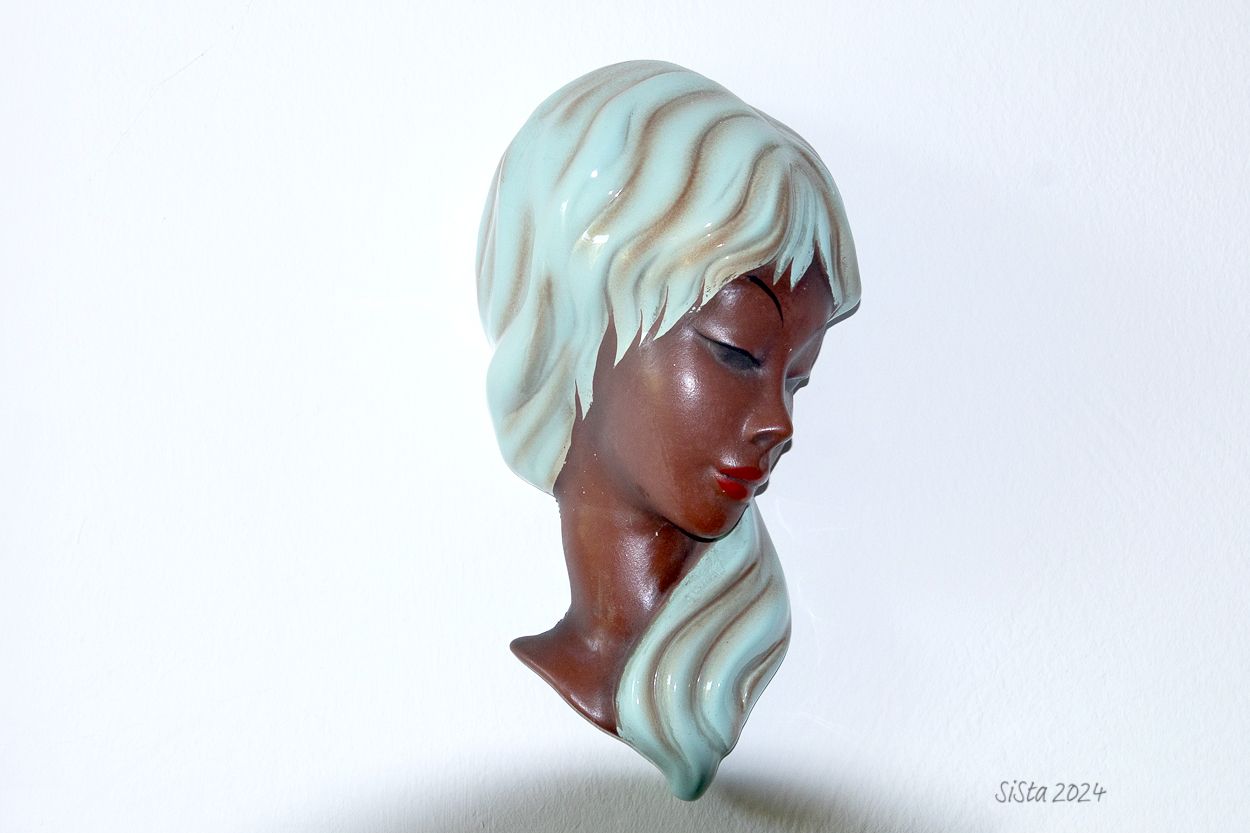 Diese Figur ist aus ihrer Jugend und circa 60 Jahre alt, oder sogar noch älter. Die Figur hängt bei mir an der Wand, weil ich es mag von Lieblingsgegenständen meiner Verstorbenen umgeben zu sein.