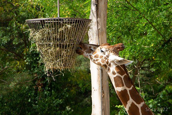 Es heißt ja bekanntlich, dass die süßesten Früchte immer ganz oben hängen. Für die Giraffe hat das wohl eher den Sinn, dass sie sich den Hals nicht verrenkt. Weil ich doch bezweifle, dass Gras und Heu süß schmecken.